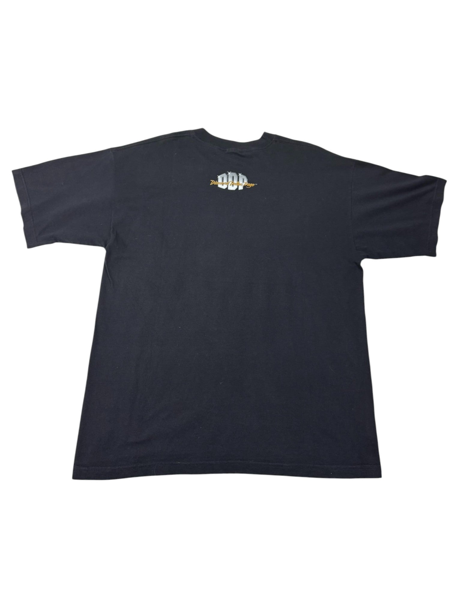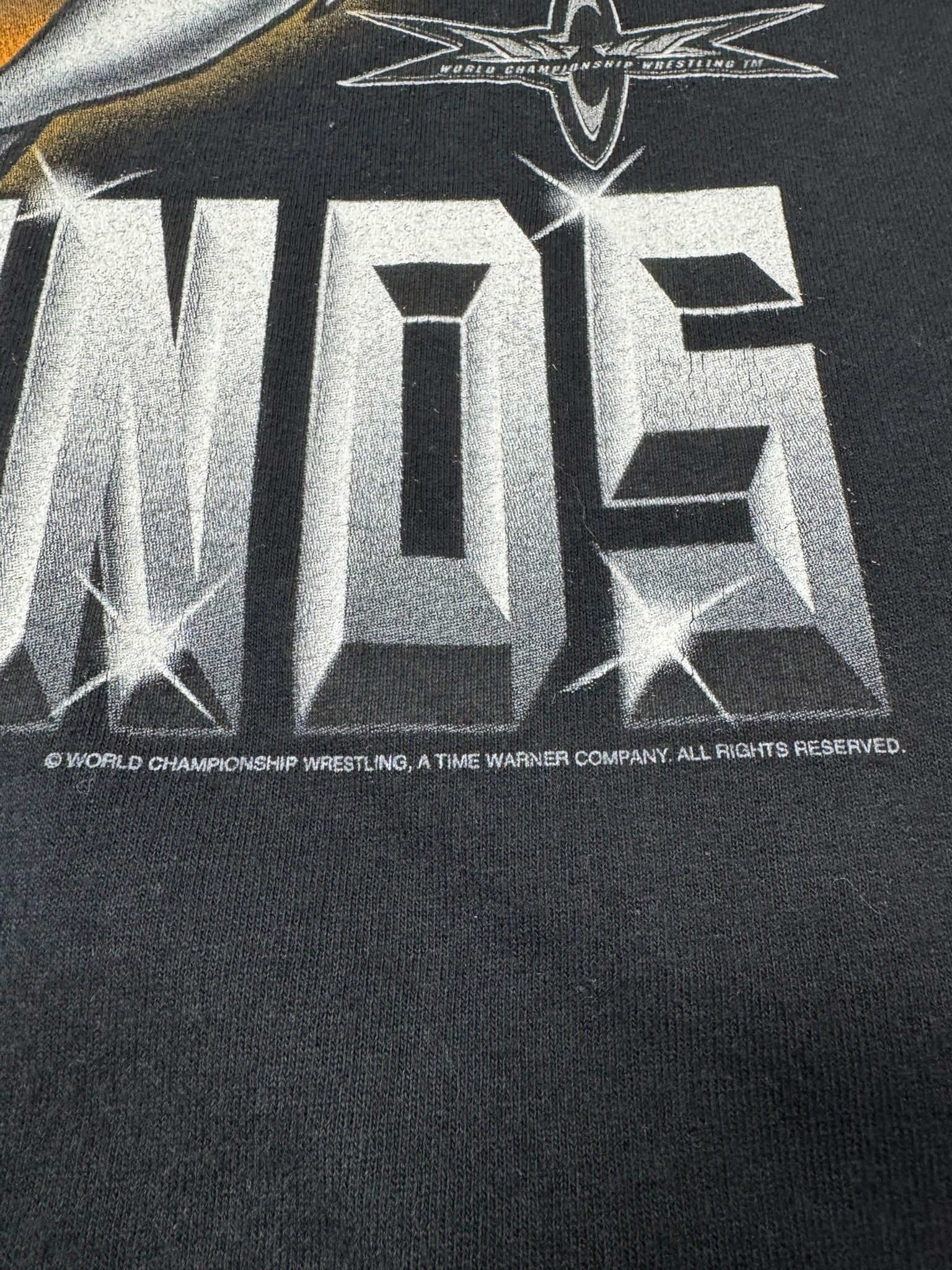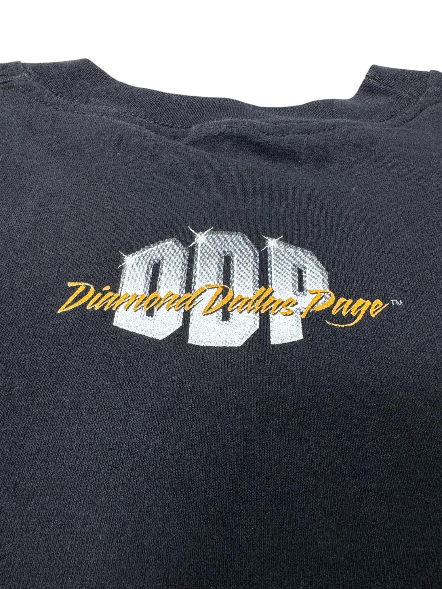 Authentic vintage Diamond Dallas Page (DDP) WCW wrestling t-shirt featuring the iconic “Diamond” graphic. This piece showcases bold metallic-style lettering and classic late-90s wrestling energy. Printed on a black cotton tee with single stitch sleeves and hem, making it a true vintage original. A must-have for WCW fans and collectors of classic wrestling merchandise.
