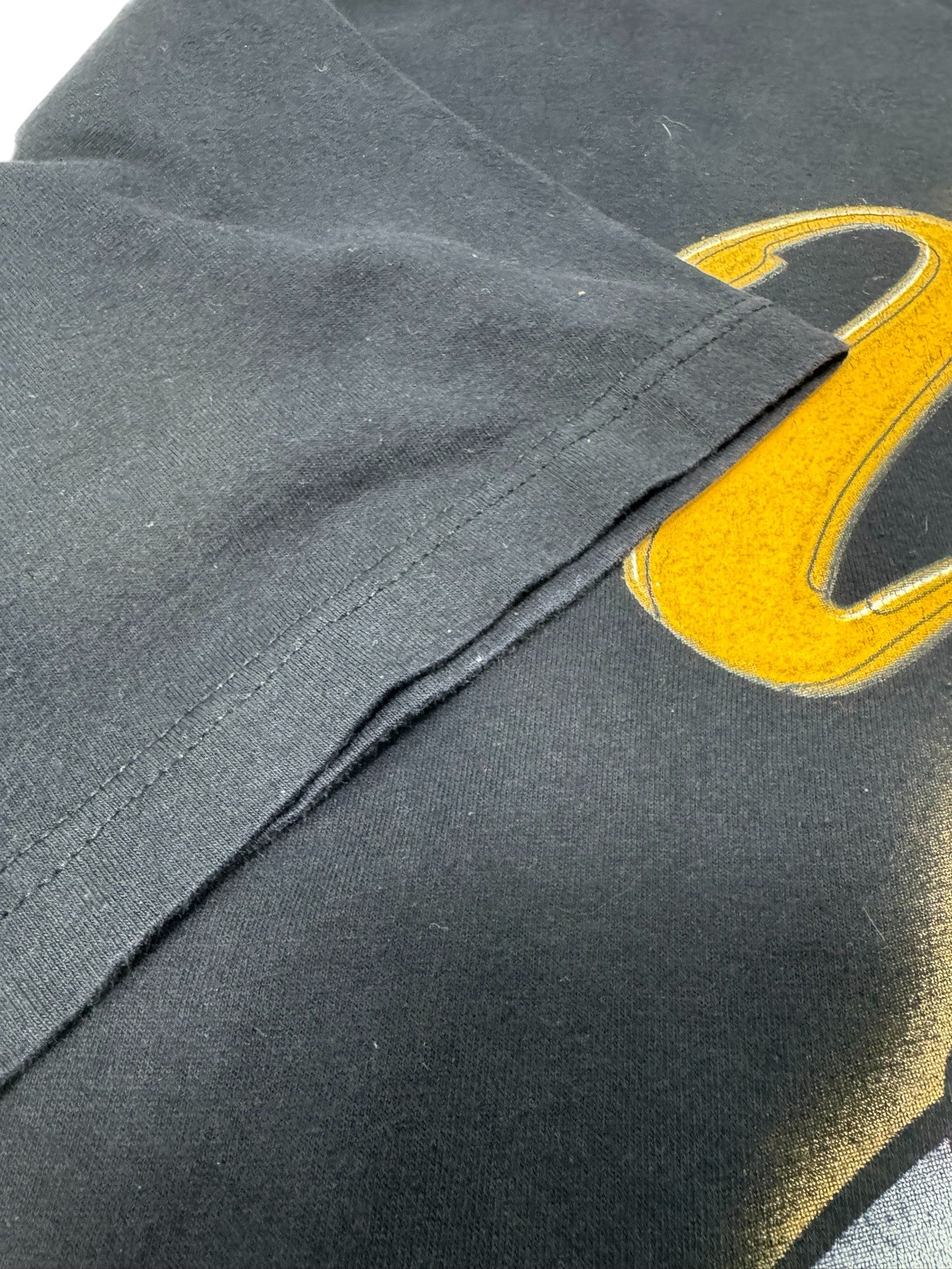 Good vintage condition. Light overall wear consistent with age. No major holes or stains noted. Graphic remains strong with normal cracking/fade from wear. Please review photos for full condition details.