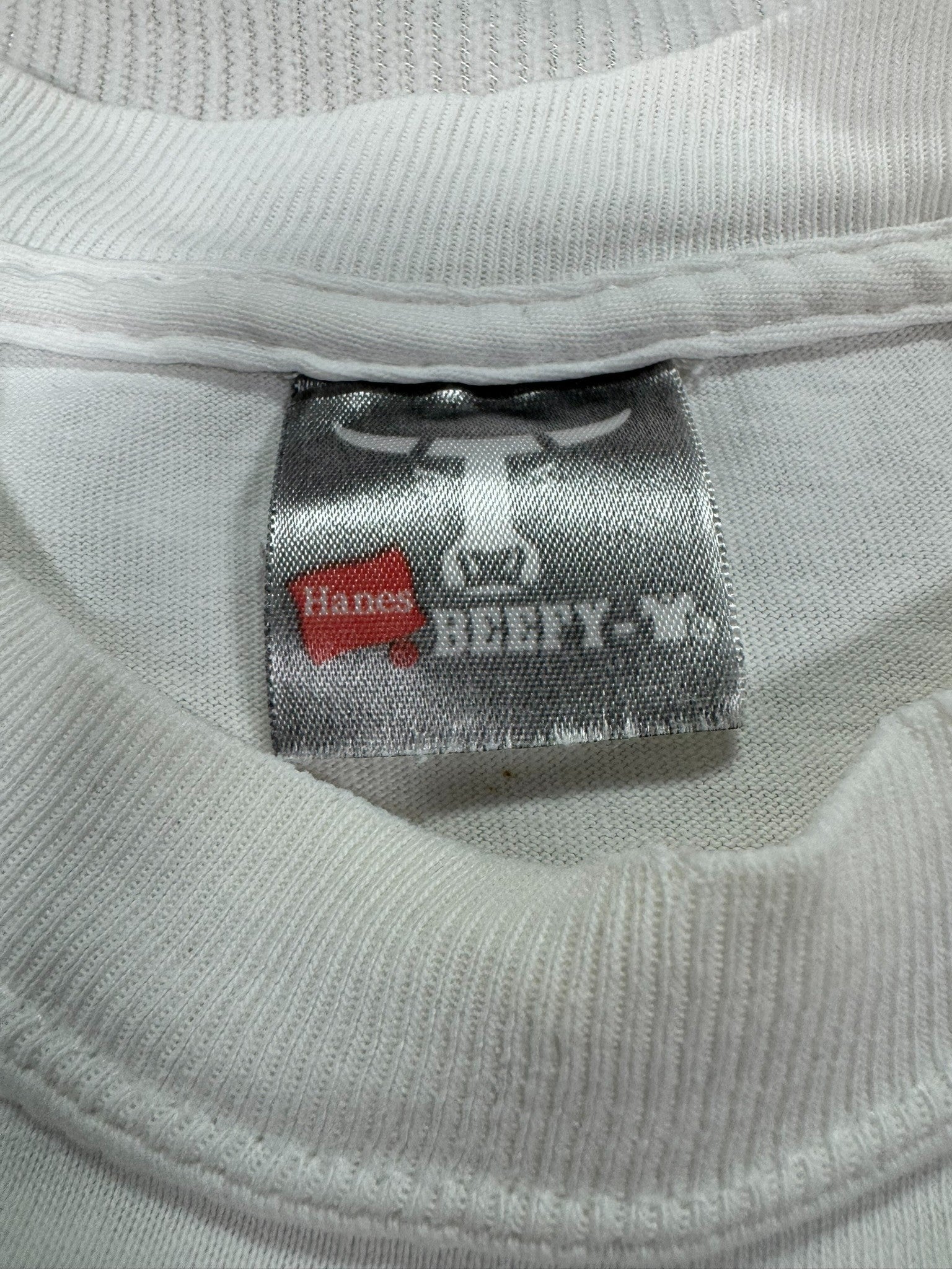 Soft, heavyweight cotton feel typical of late-90s/early-2000s Hanes blanks.