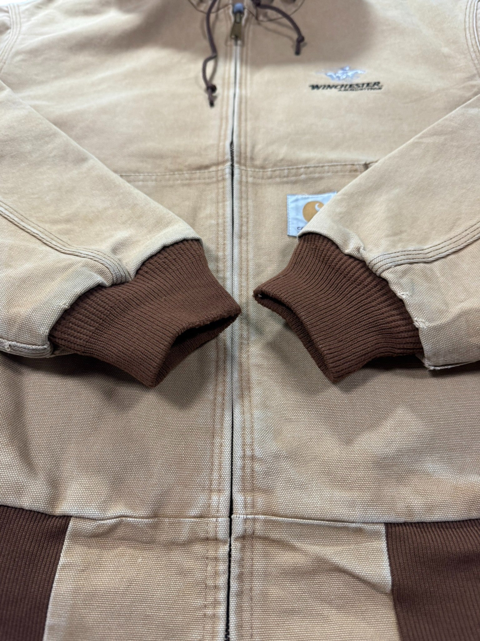 Vintage Carhartt J06 Winchester Promo Hooded Duck Canvas Thermal Active Jacket - Made in USA - XL