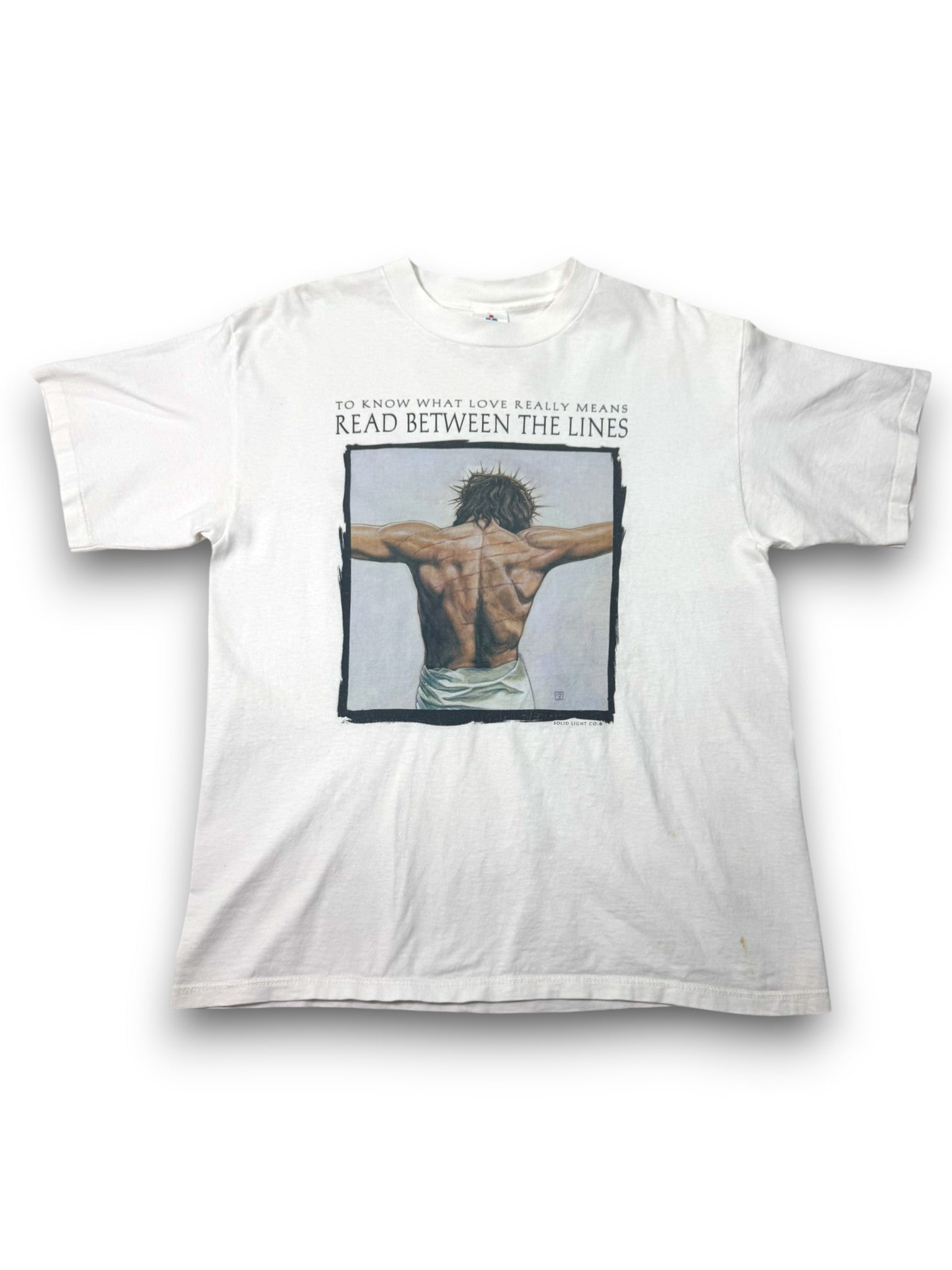 Vintage Crucified Jesus “Read Between the Lines” Jesus Tee (L)