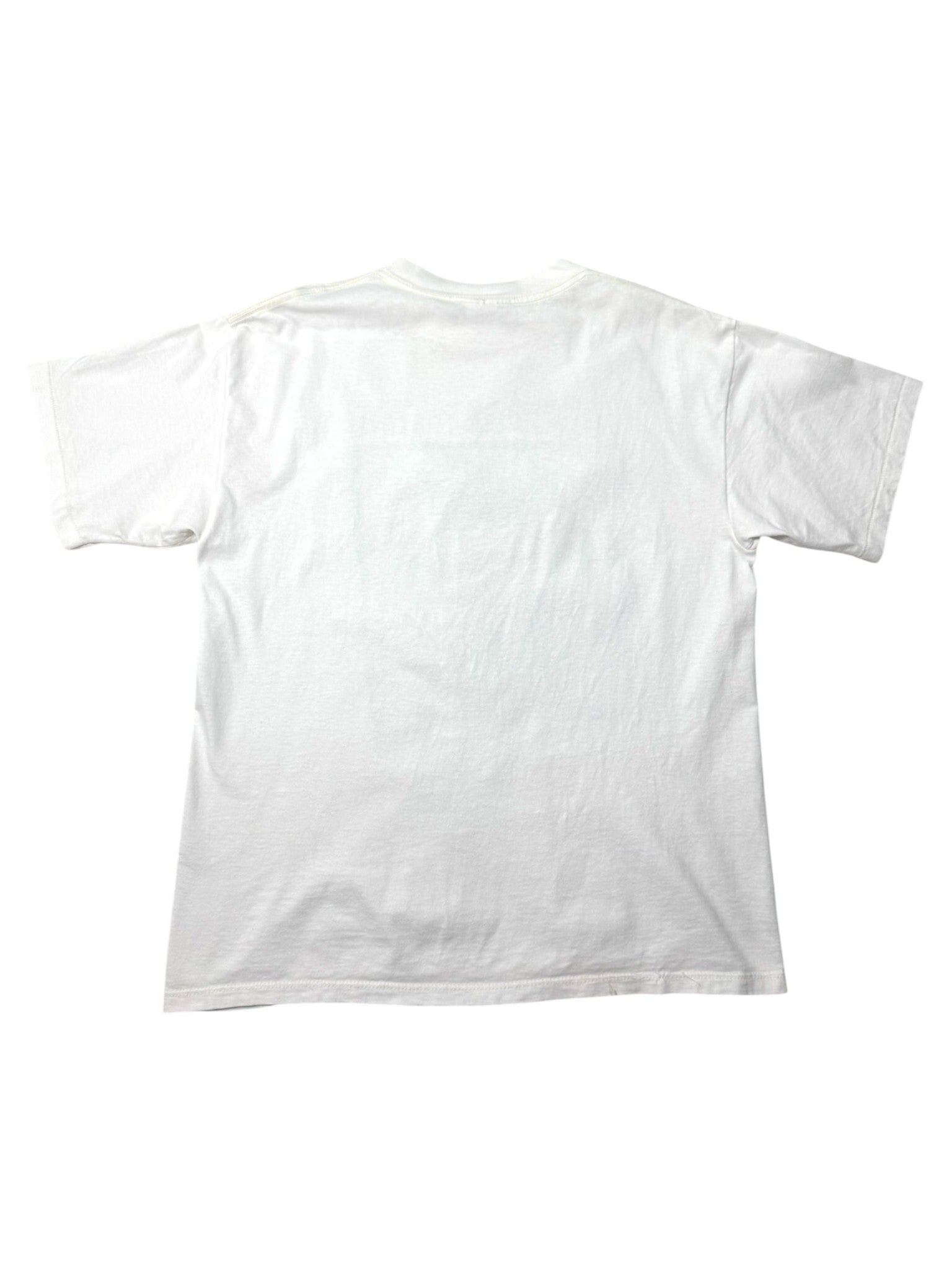 White base tee with detailed, muted-toned graphic that has aged beautifully over time.