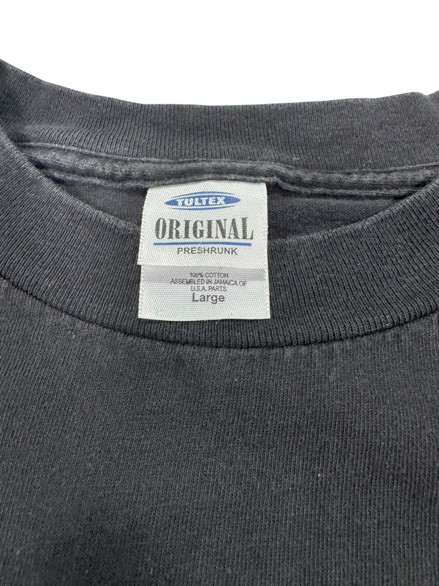 - Classic black tee with strong late-90s/early-2000s Christian streetwear aesthetic.