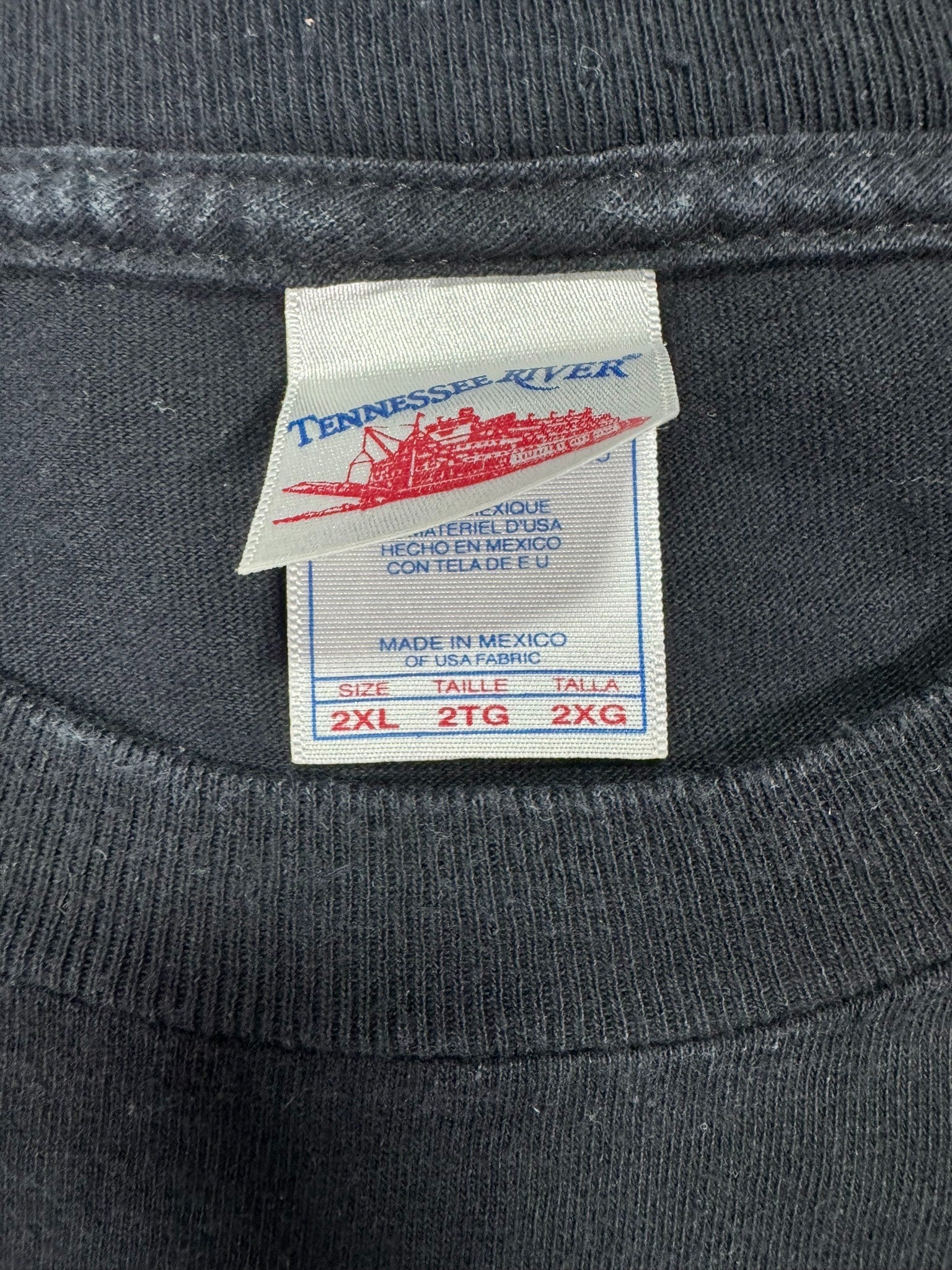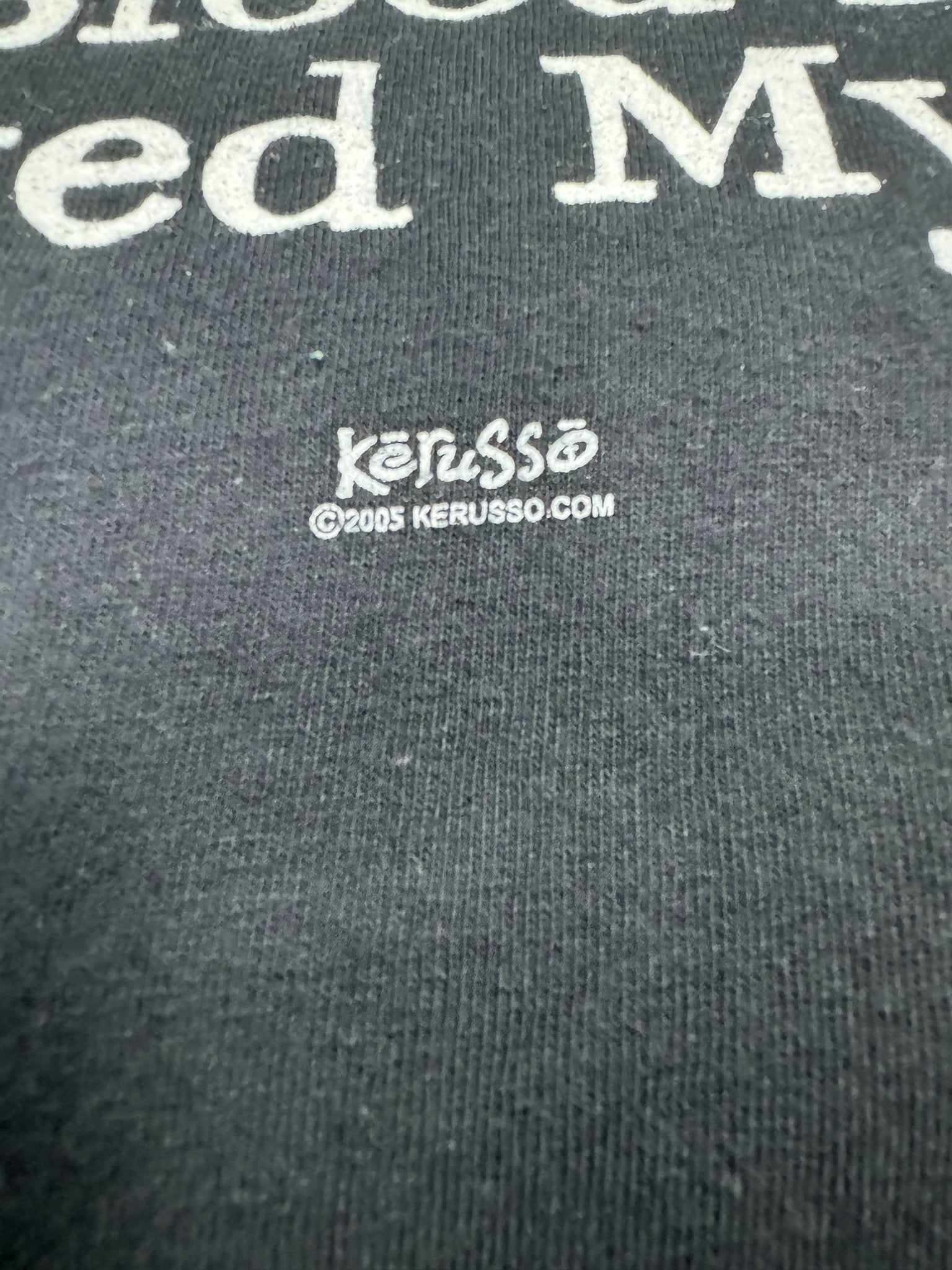 Printed on a heavyweight black cotton tee, this shirt carries early-2000s Kerusso branding and has a naturally worn, vintage look that adds character and authenticity.